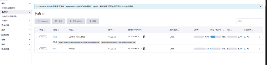 n01 Ready worker 24h v1.23.16 192.168.2.72 <none> Rocky Linux 8.10 (Green Obsidian) 5.4.289-1.el8.elrepo.x86_64 docker://20.10.24